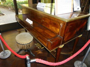 公園内では茶室でのお茶のサービス、屋外コンサート、そして大田黒氏が書斎として使った「離れ」にピアノが展示されていました。